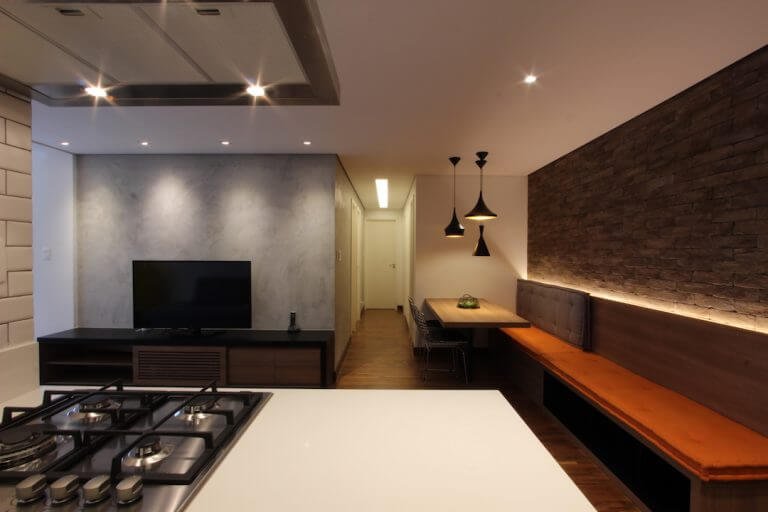 One option is to blend an entire wall in gray with some accents in bright yellow or red. The colors can vary according to your style, the important thing is to contrast the gray with something more striking, if the desired effect is to bring more life to the space.