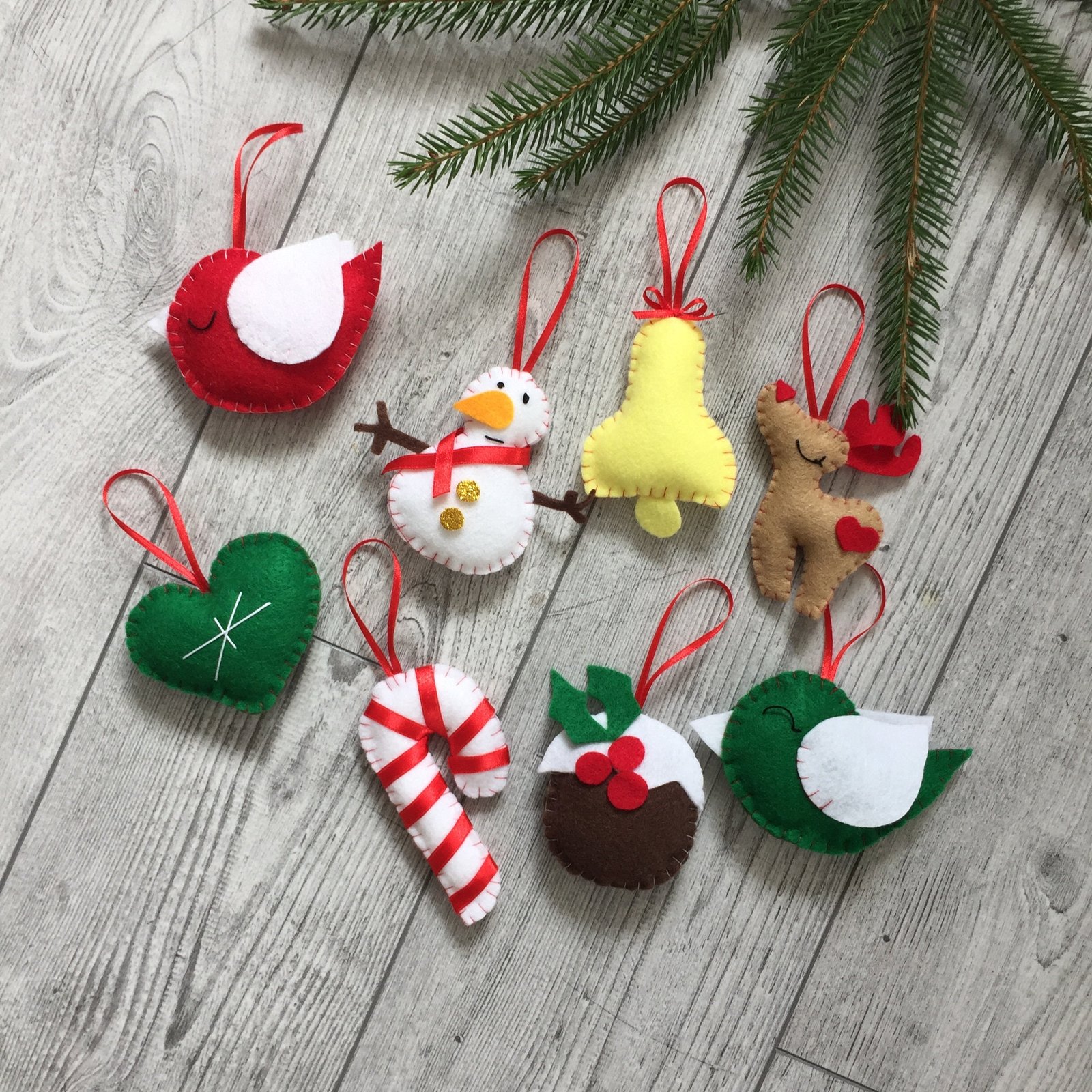 On the internet, you can find molds that can be used to cut shapes on the felt, then just sew and you will have beautiful items to compose your decoration.